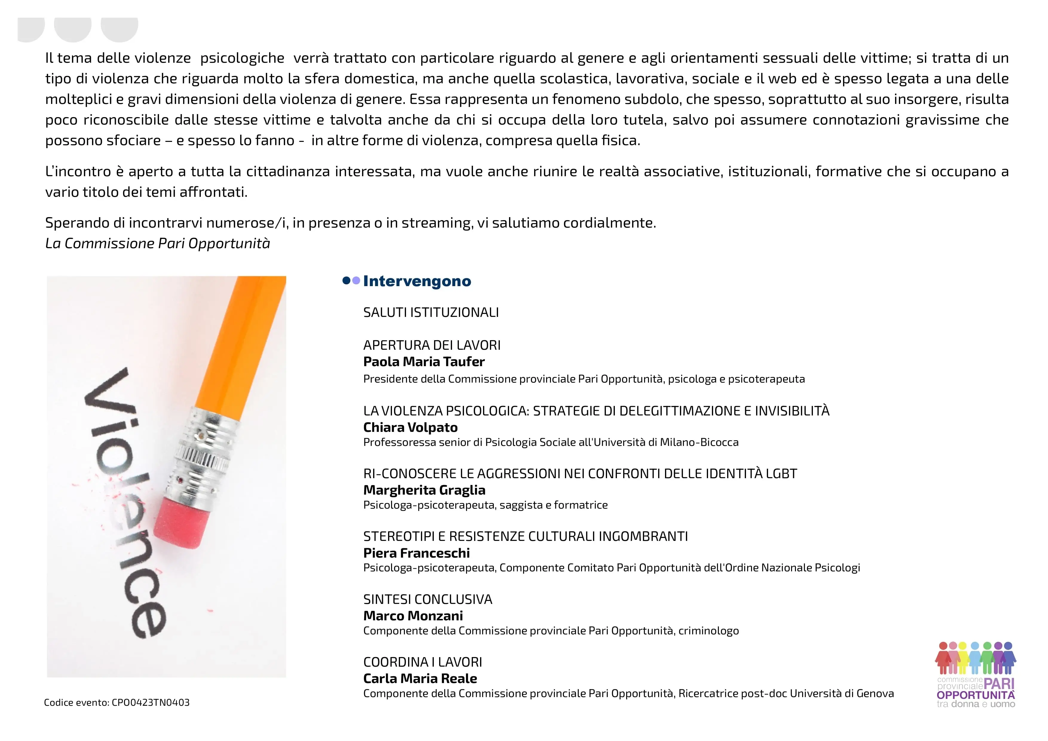 Evento: Tracciare i confini del rispetto. Le violenze psicologiche di genere